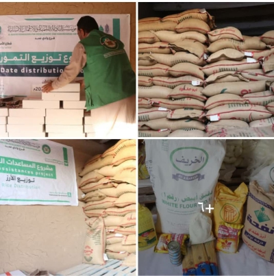مواد غذائية أرز تم التوزيع لعدد (370 )أسرة استفاد منها عدد ( 2590) فرد سلة غذائية تم التوزيع لعدد ( 59 ) أسرة استفاد عدد ( 414 )فرد تمورتم توزيع لعدد ( 350) أسرة استفاد منها ( 2450)فرد بالاضافه الى توزيع مياه شرب عدد (24) وايت بلغ عدد المستفيدين ( 1350)فرد مشروع احياء قرية بلغ عدد المناطق المستفاده (9 )بلغ عدد المستفيدين( 1400) فرد وفي الجانب الطبي بلغ عدد